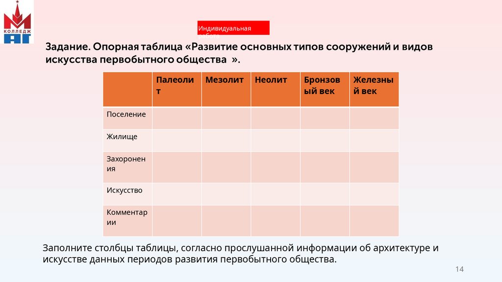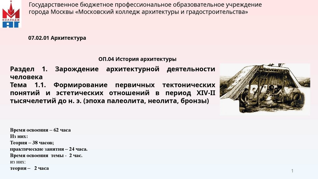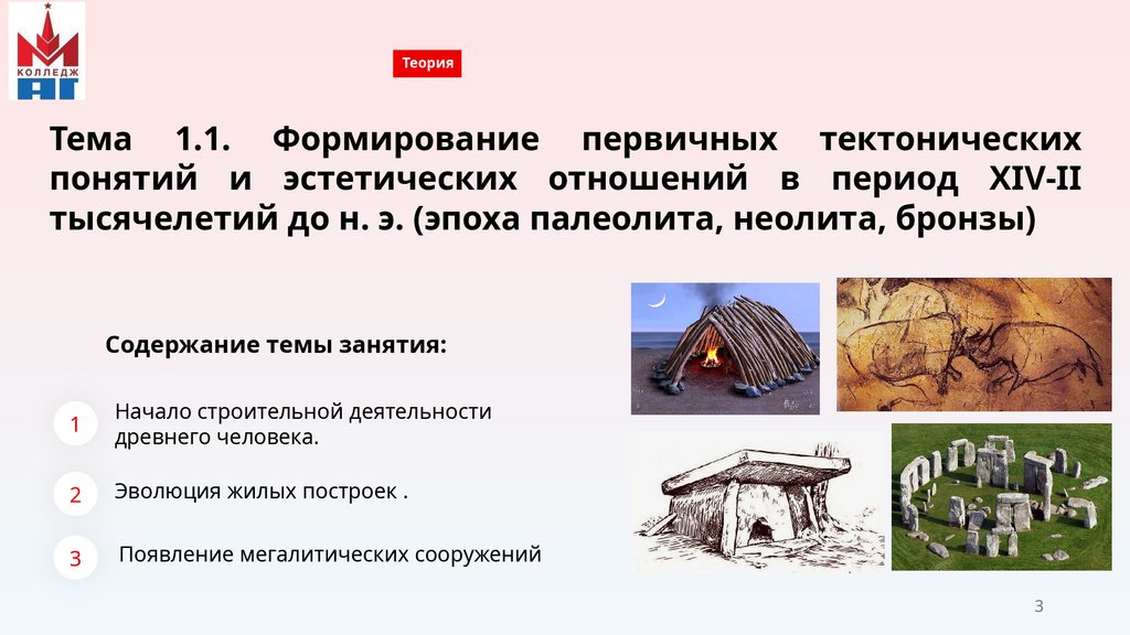 Тема 1.1. Формирование первичных тектонических понятий и эстетических отношений в период XIV-II тысячелетий до н. э. (эпоха
