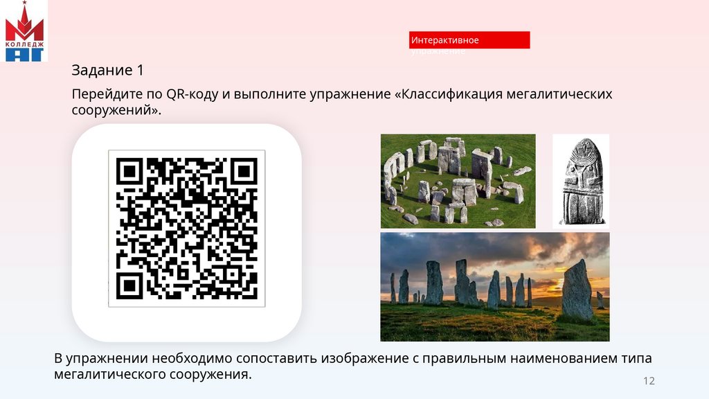 Перейдите по QR-коду и выполните упражнение «Классификация мегалитических