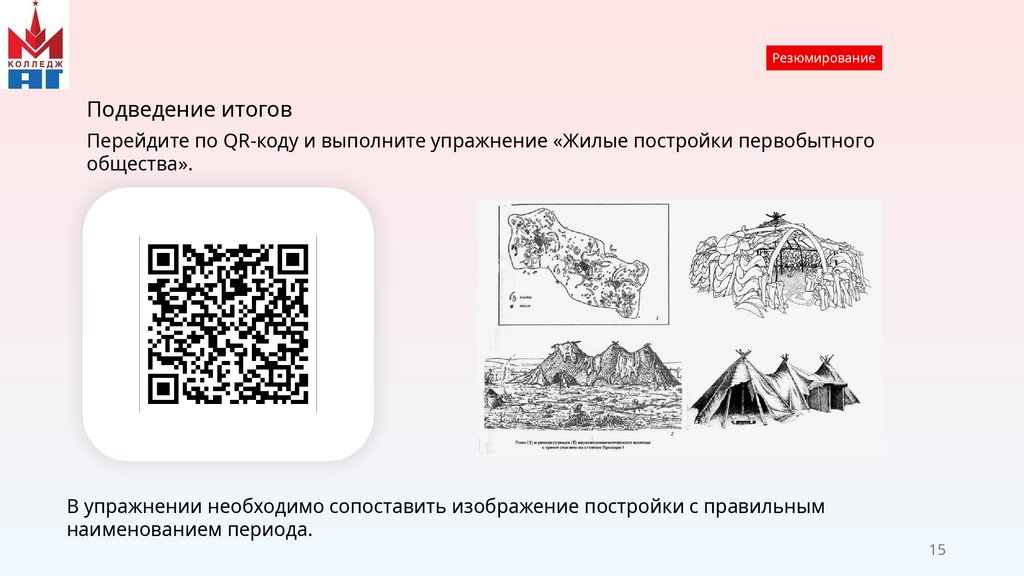 Перейдите по QR-коду и выполните упражнение «Жилые постройки первобытного