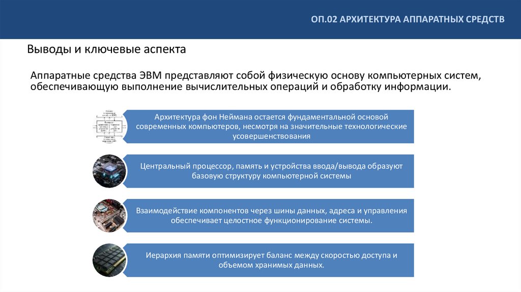 ОП.02 АРХИТЕКТУРА АППАРАТНЫХ СРЕДСТВВыводы и ключевые аспекта