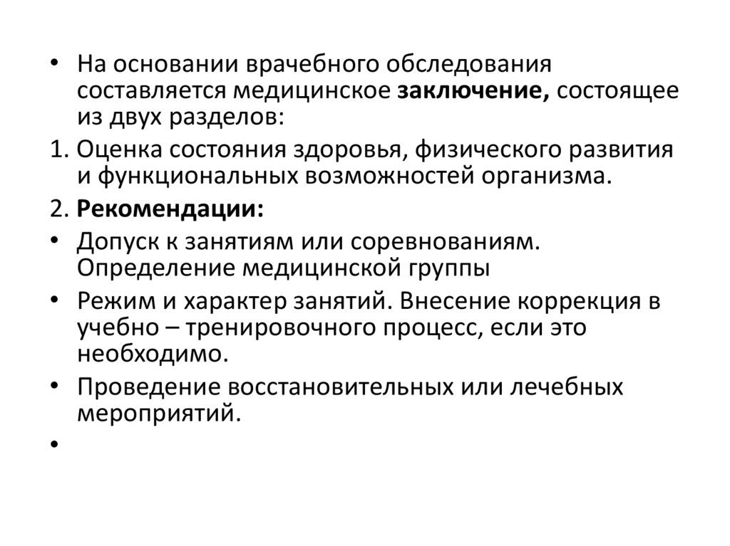 • На основании врачебного обследованиясоставляется медицинское заключение, состоящее