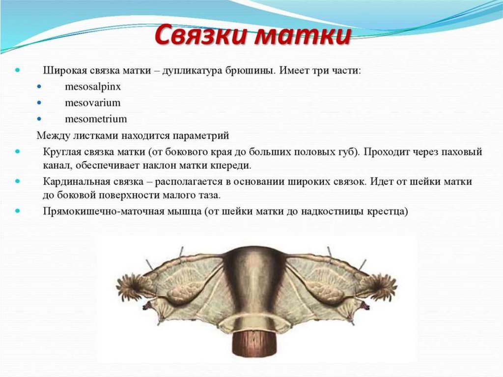 6. Подвешивающие связки матки и придатков представлены парными связками, которые соединяют органы друг с другом и стенками малого