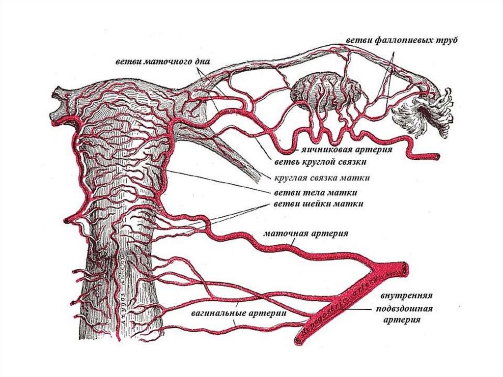 • артерия круглой связки матки, такжеизвестная как артерия Сэмпсона, является