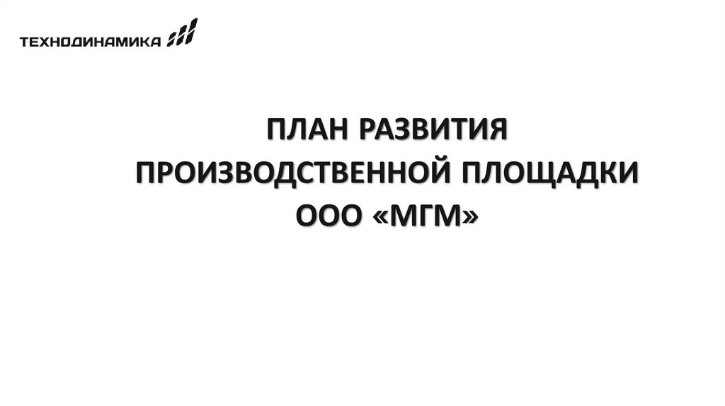 ПЛАН РАЗВИТИЯПРОИЗВОДСТВЕННОЙ ПЛОЩАДКИ