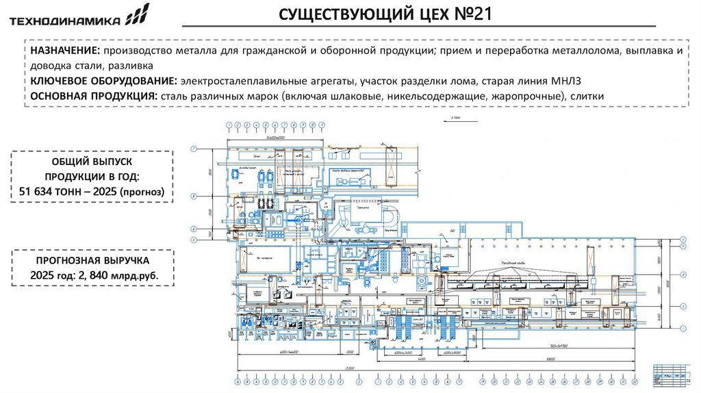 СУЩЕСТВУЮЩИЙ ЦЕХ №21НАЗНАЧЕНИЕ: производство металла для гражданской и оборонной продукции; прием и переработка металлолома, выплавка и
