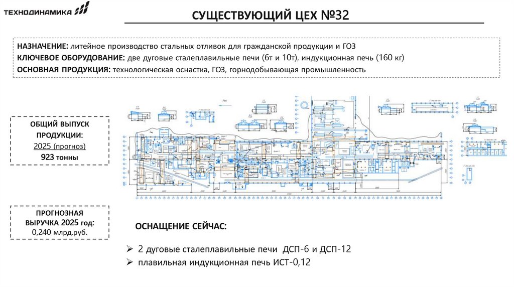 СУЩЕСТВУЮЩИЙ ЦЕХ №32НАЗНАЧЕНИЕ: литейное производство стальных отливок для гражданской продукции и ГОЗ