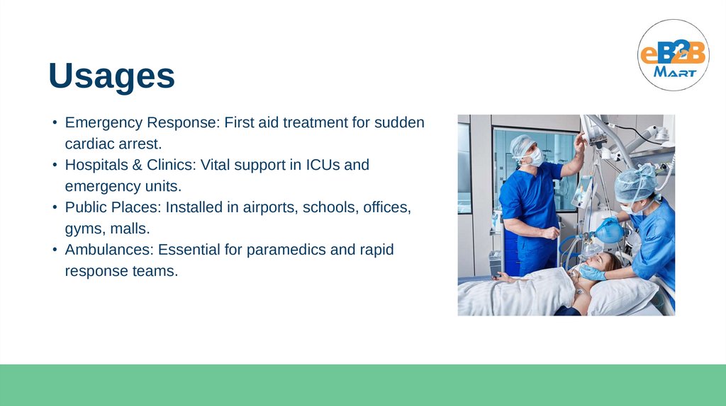 Usages• Emergency Response: First aid treatment for sudden