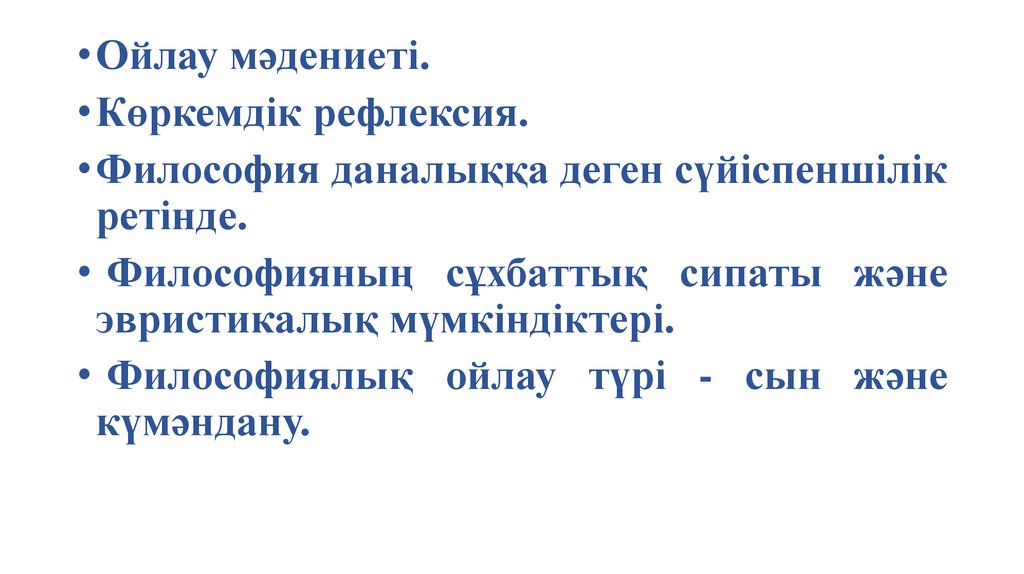 • Ойлау мәдениеті.• Көркемдік рефлексия.