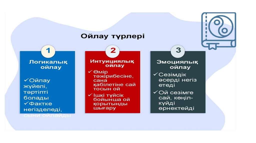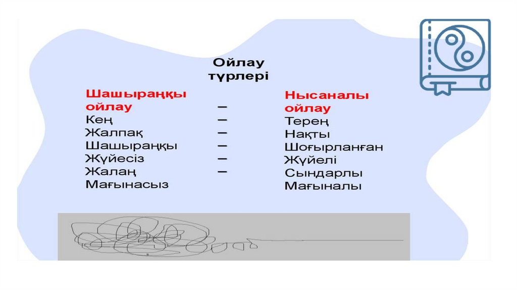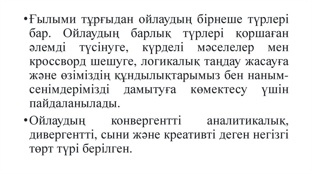 • Ғылыми тұрғыдан ойлаудың бірнеше түрлерібар. Ойлаудың барлық түрлері қоршаған