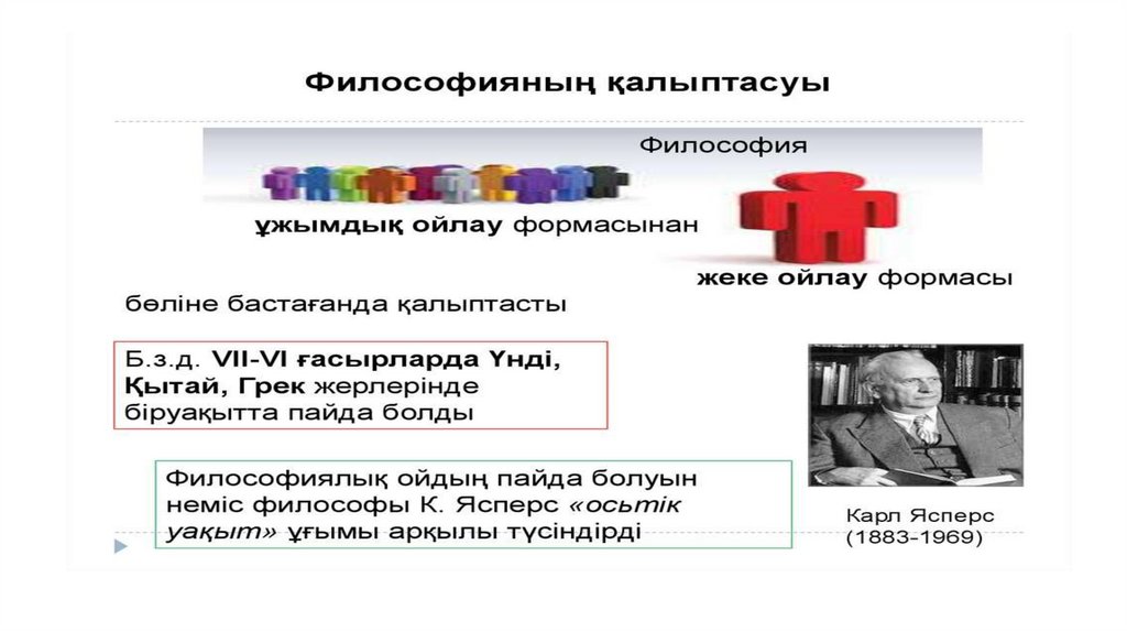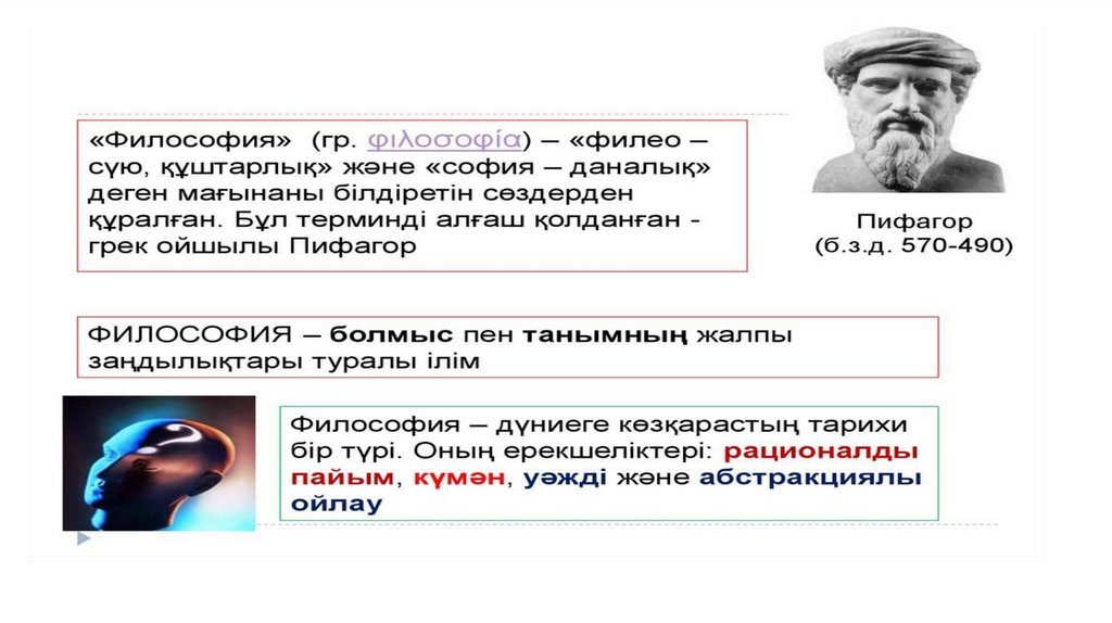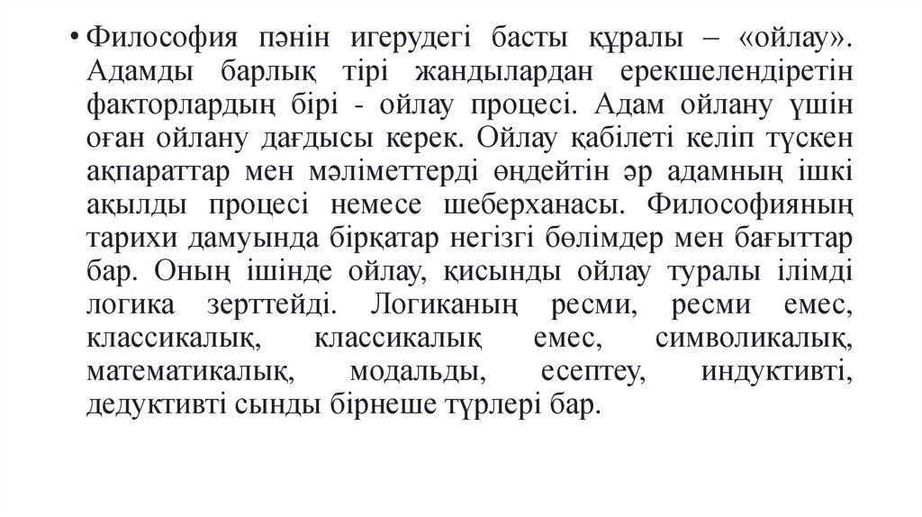 • Философия пәнін игерудегі басты құралы – «ойлау».Адамды барлық тірі жандылардан ерекшелендіретін