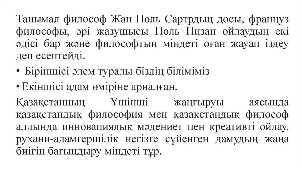 Танымал философ Жан Поль Сартрдың досы, французфилософы, әрі жазушысы Поль Низан ойлаудың екі