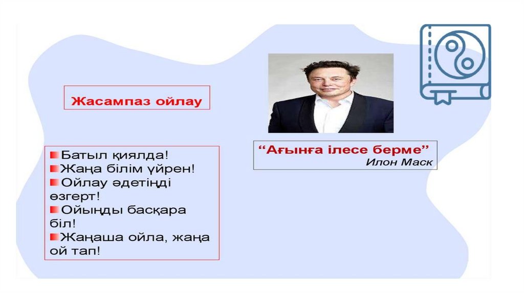 оған ойлану дағдысы керек. Ойлау қабілеті келіп түскен