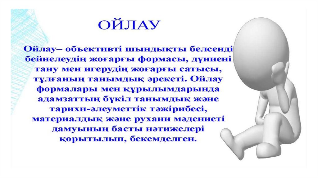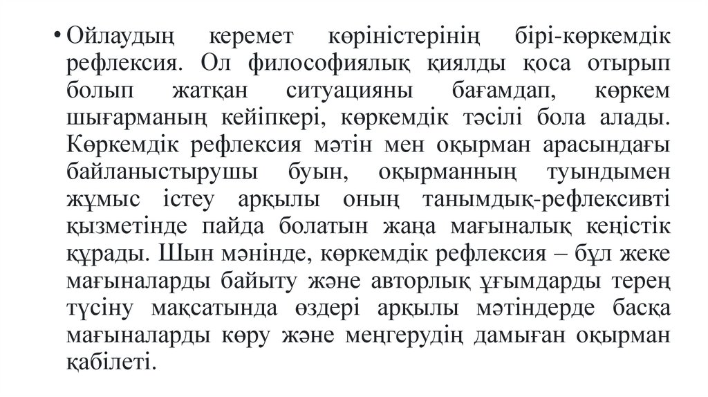 • Ойлаудың керемет көріністерінің бірі-көркемдікрефлексия. Ол философиялық қиялды қоса отырып