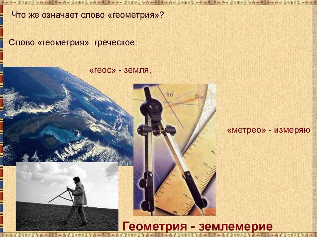 Что же означает слово «геометрия»?Слово «геометрия» греческое: