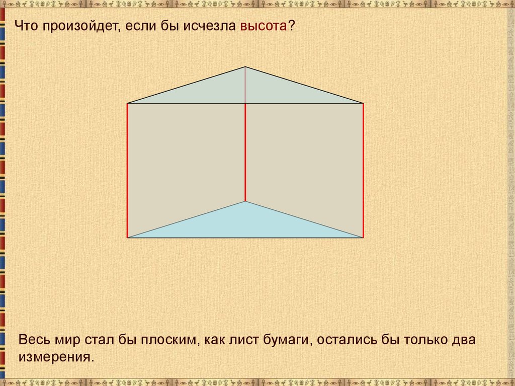 Что произойдет, если бы исчезла высота?Весь мир стал бы плоским, как лист бумаги, остались бы только два