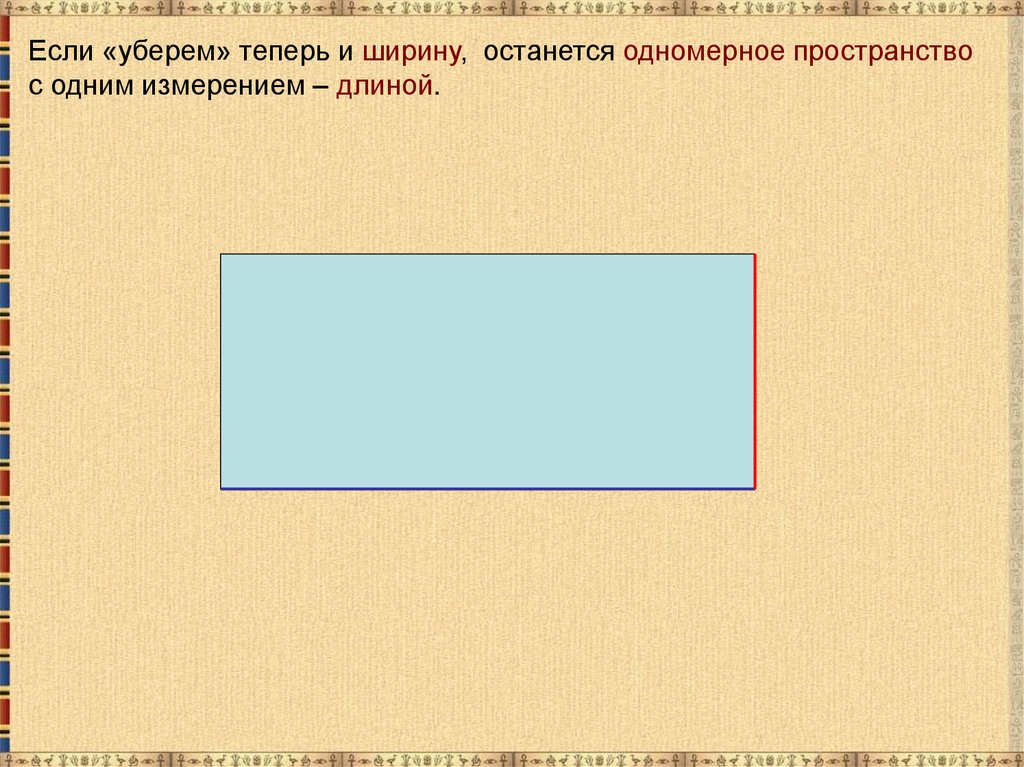 Если «уберем» теперь и ширину, останется одномерное пространствос одним измерением – длиной.