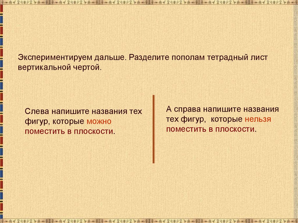 Экспериментируем дальше. Разделите пополам тетрадный листвертикальной чертой.