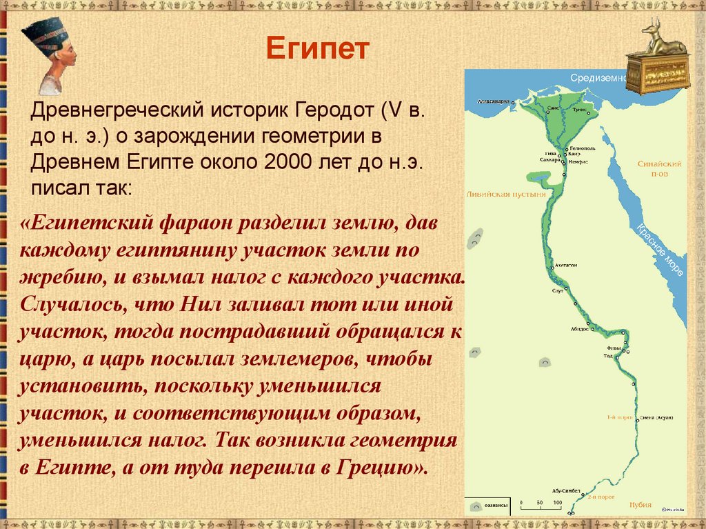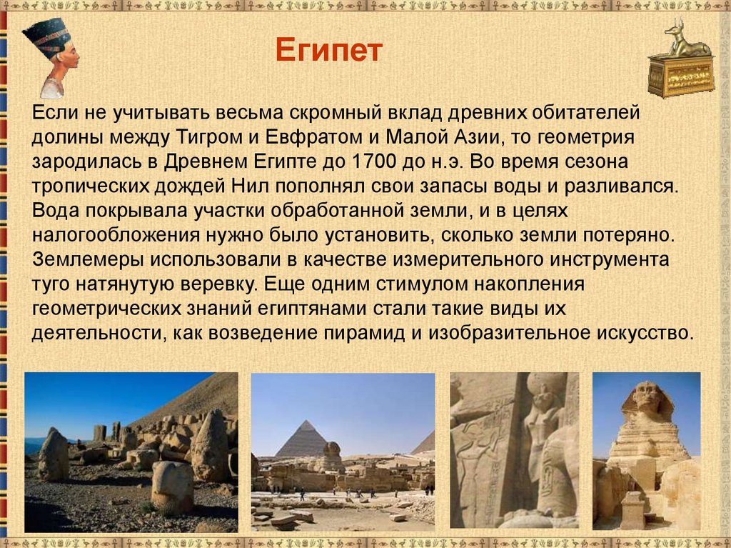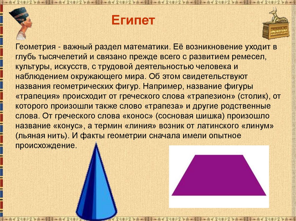 ЕгипетГеометрия - важный раздел математики. Её возникновение уходит в