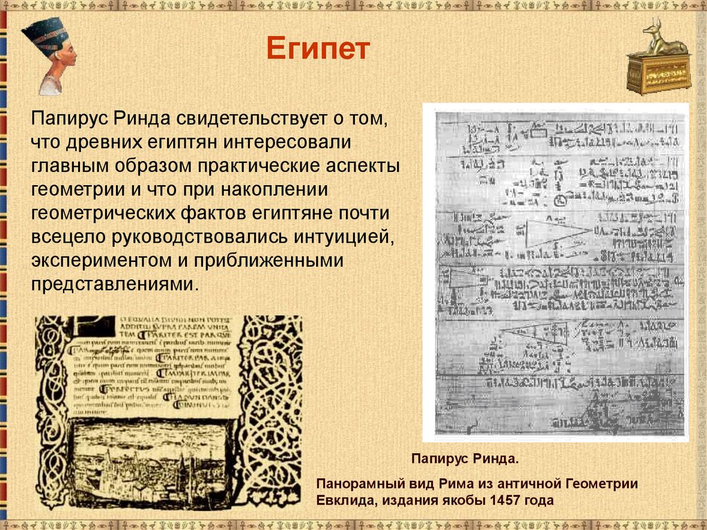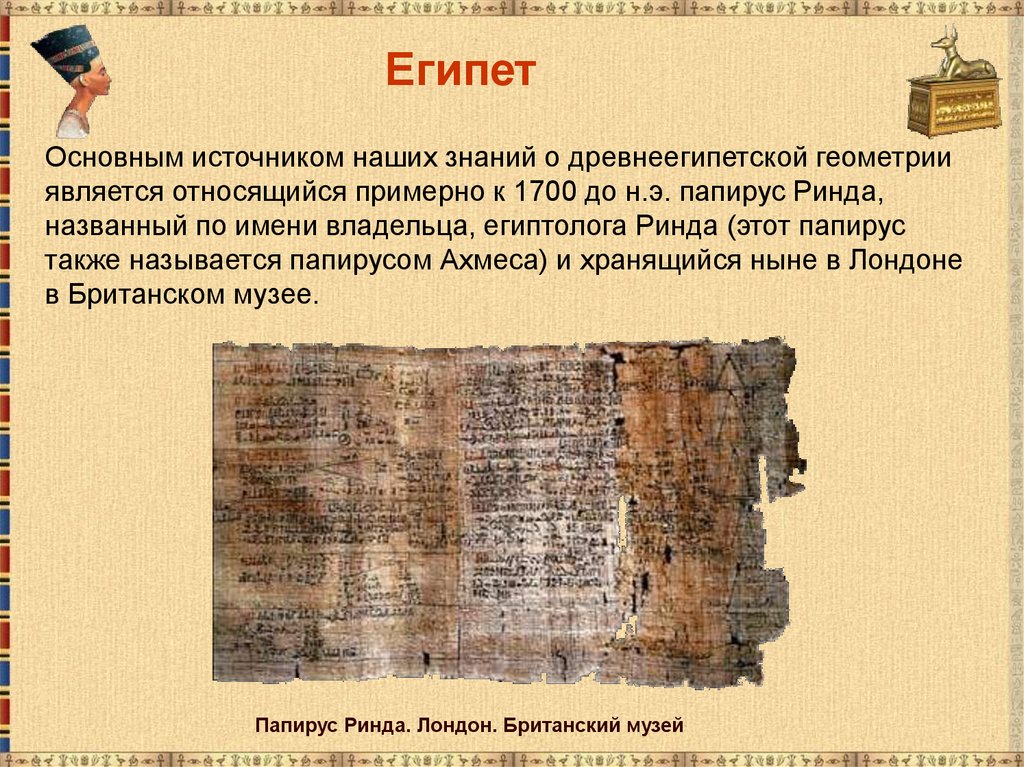 ЕгипетОсновным источником наших знаний о древнеегипетской геометрии