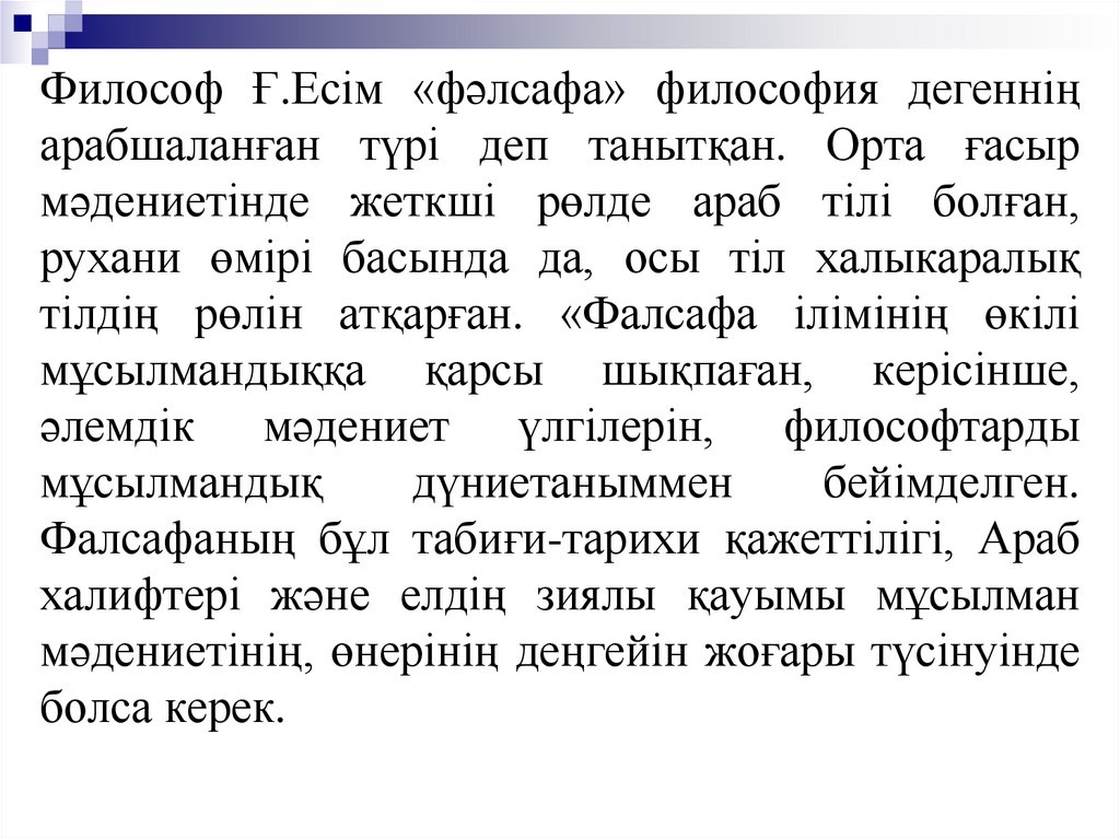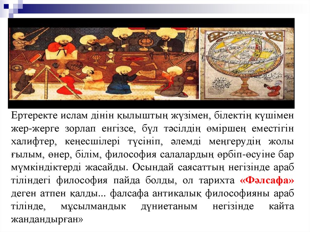 «араб жерінің философтары» деген сөз тіркестері бар.