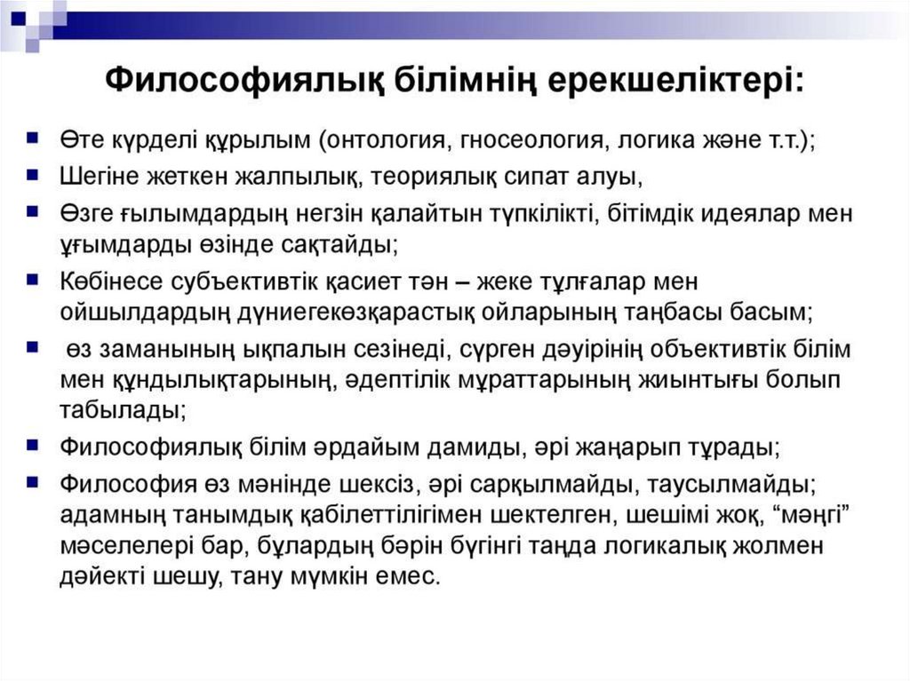 қолда бар философиялық білімге, таным жетістіктеріне сүйене