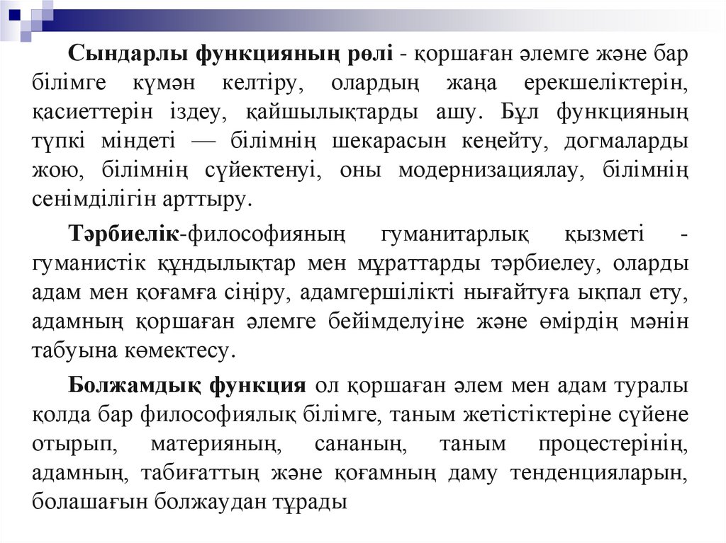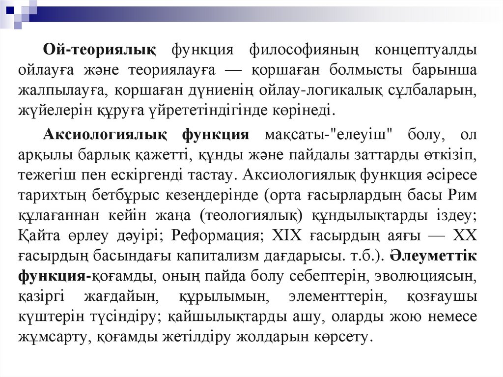 Ой-теориялық функция философияның концептуалдыойлауға және теориялауға — қоршаған болмысты барынша