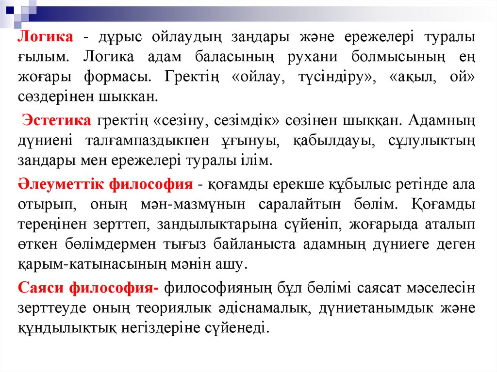 Логика - дұрыс ойлаудың заңдары және ережелері туралығылым. Логика адам баласының рухани болмысының ең