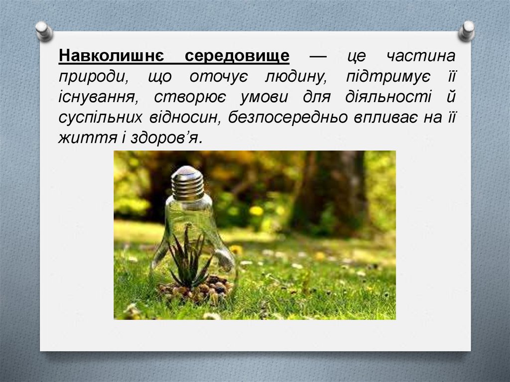 Навколишнє середовище — це частинаприроди, що оточує людину, підтримує її