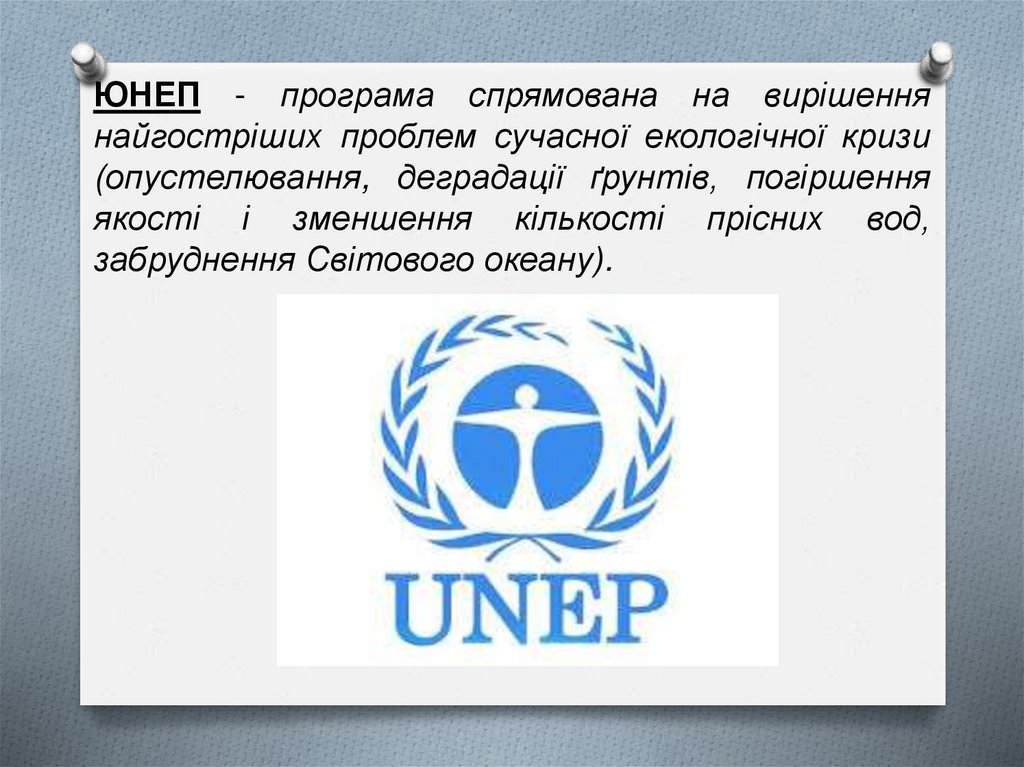 ЮНЕП - програма спрямована на вирішеннянайгостріших проблем сучасної екологічної кризи