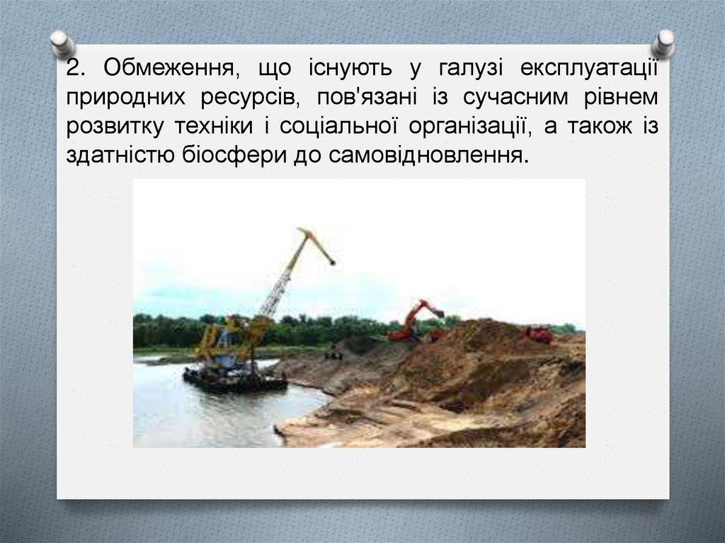 2. Обмеження, що існують у галузі експлуатаціїприродних ресурсів, пов'язані із сучасним рівнем
