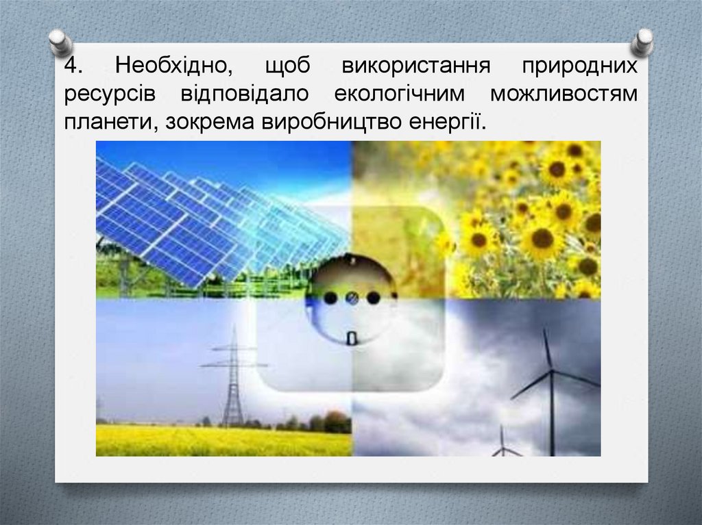 4. Необхідно, щоб використання природнихресурсів відповідало екологічним можливостям