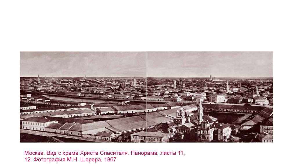 Москва. Вид с храма Христа Спасителя. Панорама, листы 11,12. Фотография М.Н. Шерера. 1867