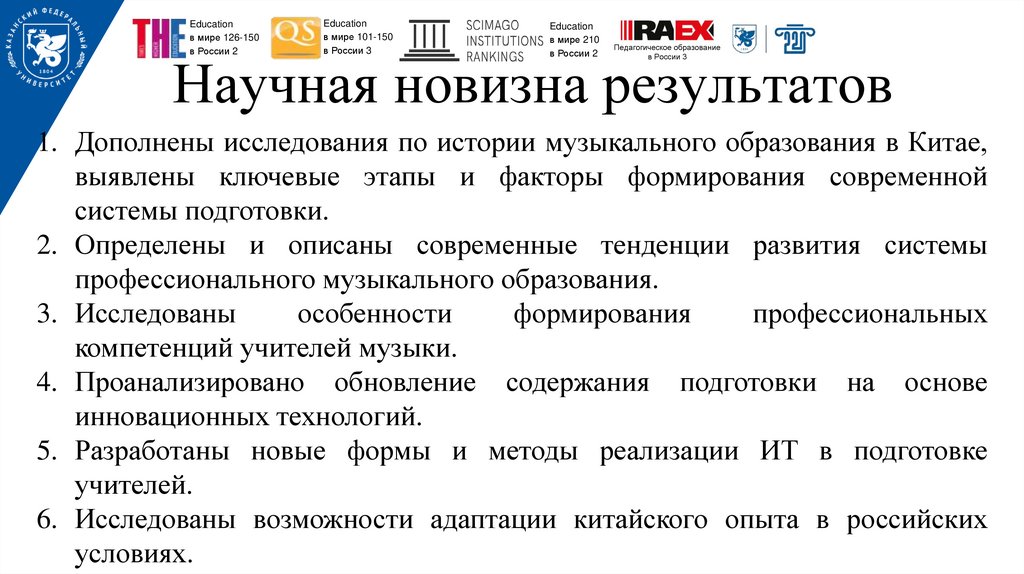 1. Дополнены исследования по истории музыкального образования в Китае,