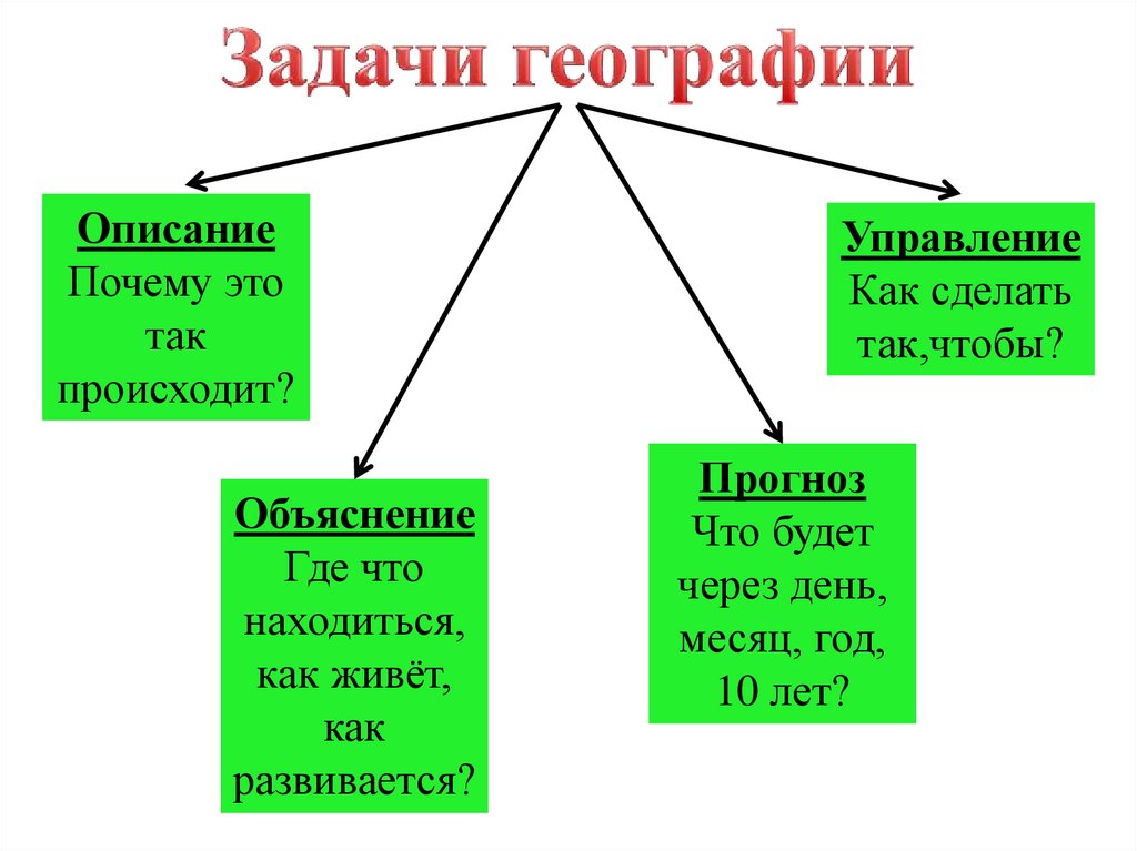 выяснить, какие задачи решает география;