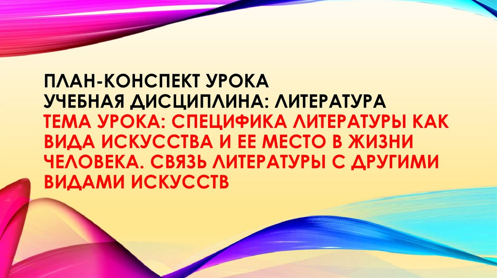 1. План-конспект урока Учебная дисциплина: Литература Тема урока: Специфика литературы как вида искусства и ее место в жизни