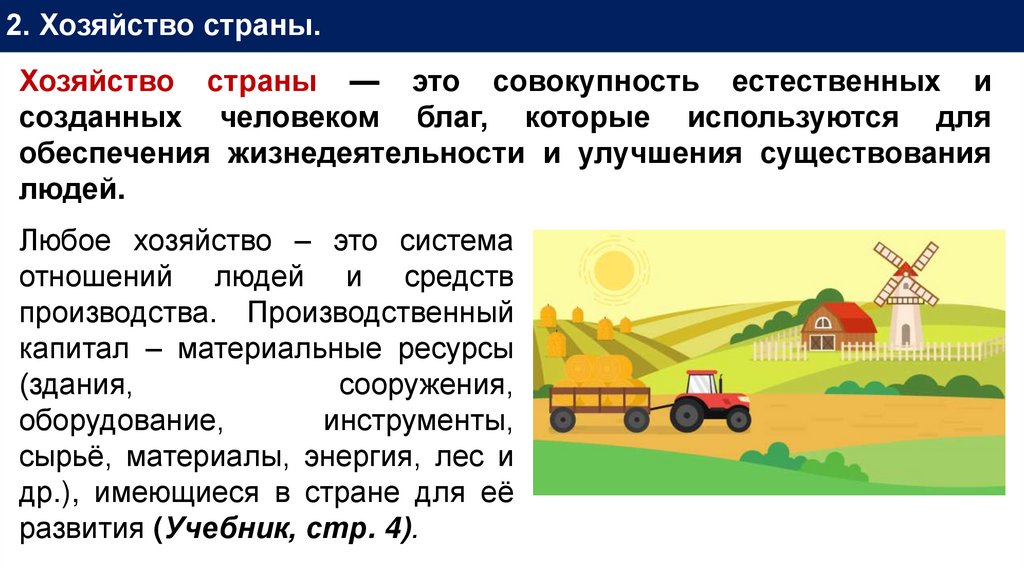 2. Хозяйство страны.Хозяйство страны — это совокупность естественных и