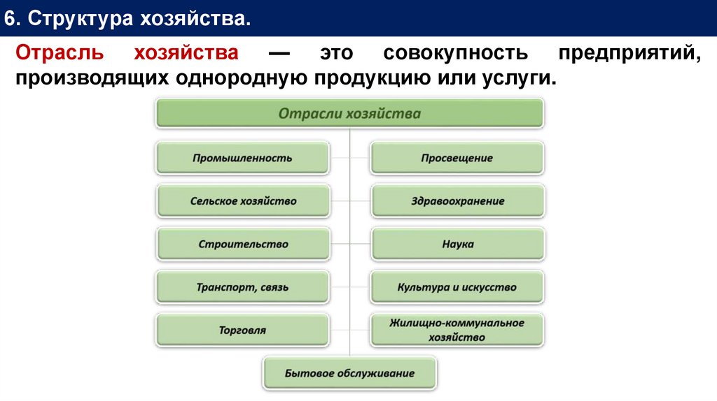 6. Структура хозяйства.Отрасль хозяйства — это совокупность предприятий,