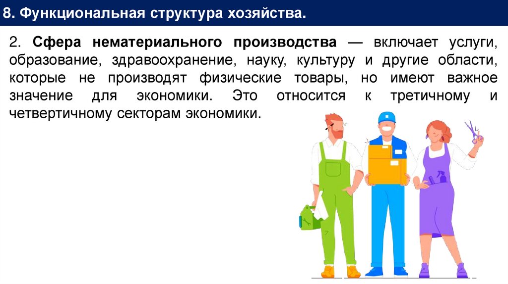 8. Функциональная структура хозяйства.2. Сфера нематериального производства — включает услуги,