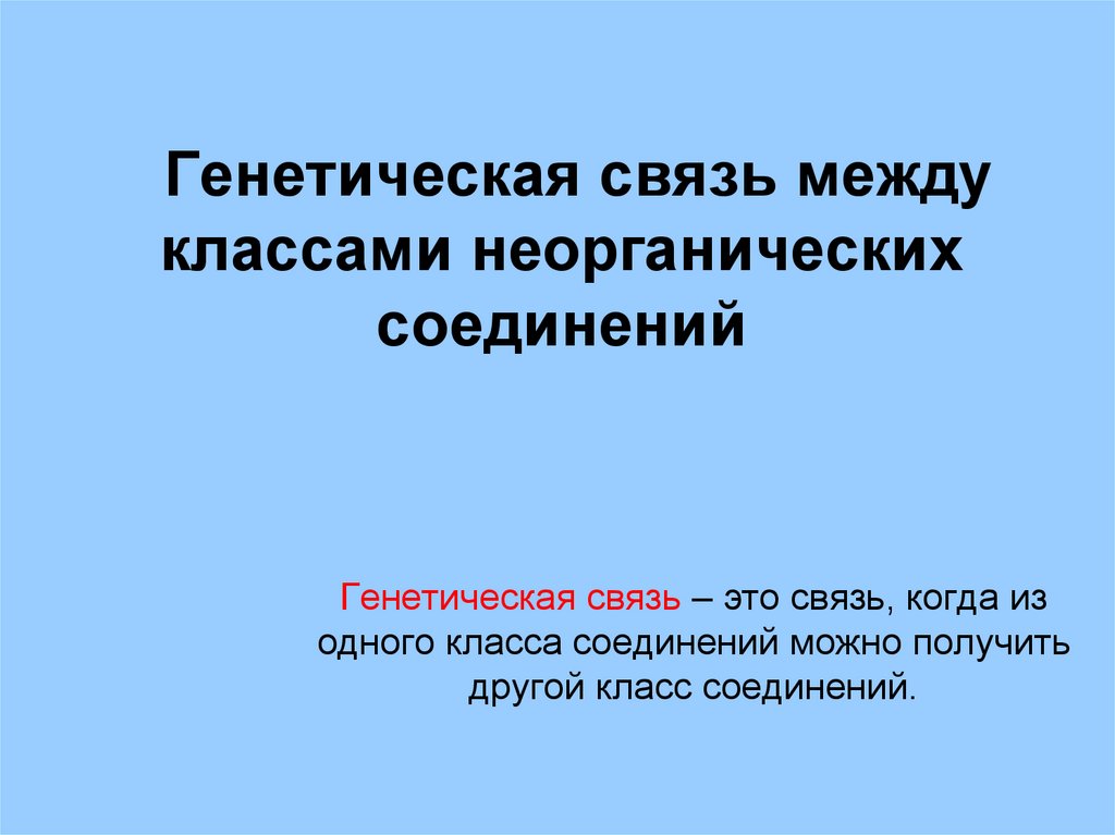 Генетическая связь – это связь, когда изодного класса соединений можно получить