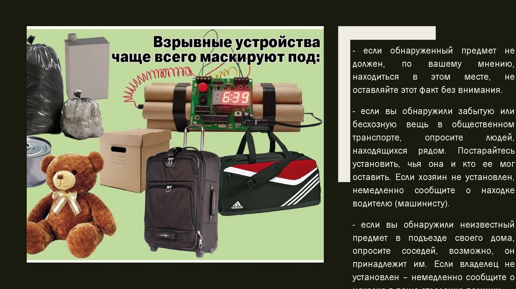 ■ Не подбирайте бесхозных вещей, как бы привлекательно они не выглядели. В них