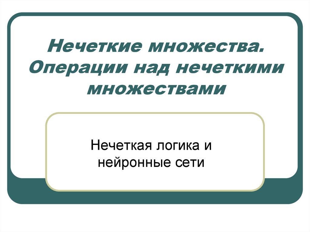 Нечеткие множества. Операции над нечеткими множествами. Нечеткая логика и нейронные сети