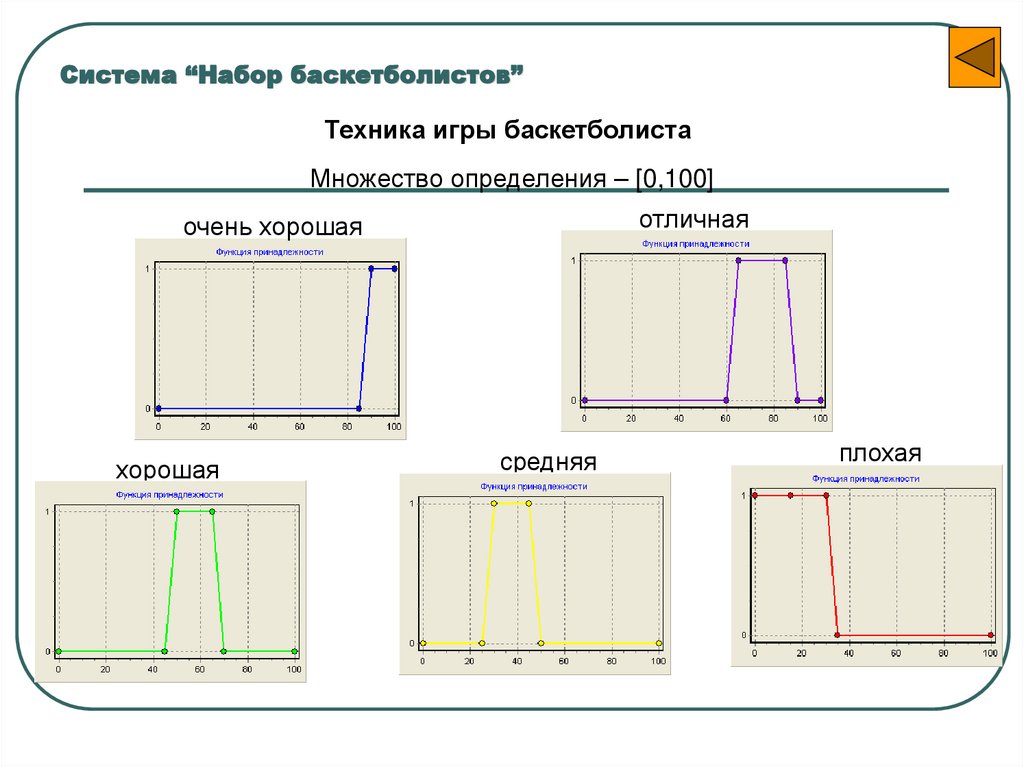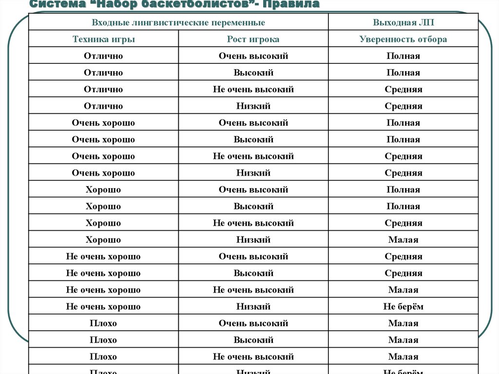 Система “Набор баскетболистов”- ПравилаВходные лингвистические переменные