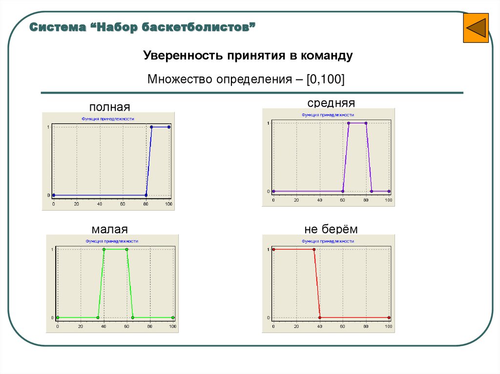 Система “Набор баскетболистов”Уверенность принятия в команду