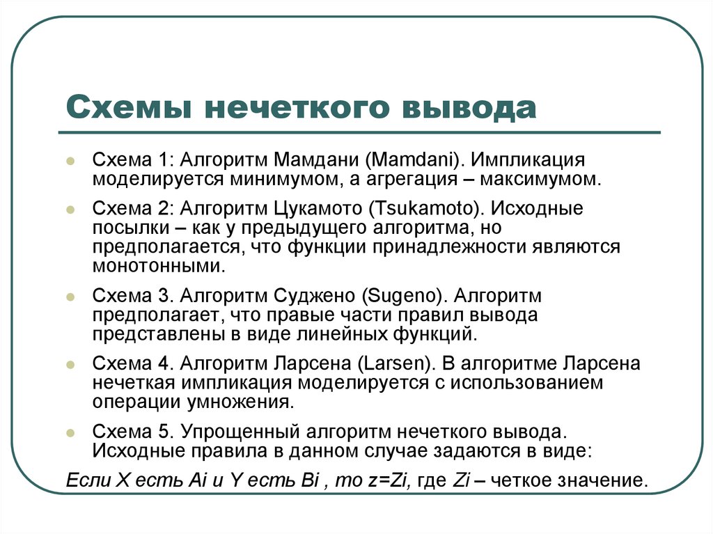 Схемы нечеткого выводаСхема 1: Алгоритм Мамдани (Mamdani). Импликация