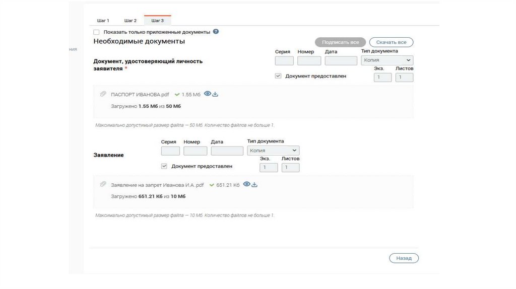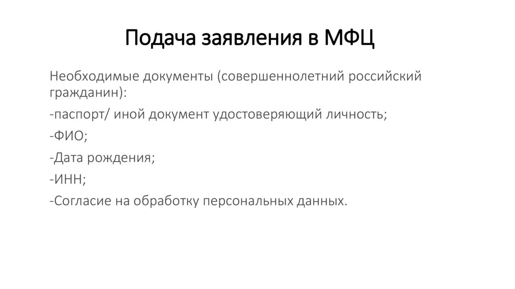 Подача заявления в МФЦНеобходимые документы (совершеннолетний российский
