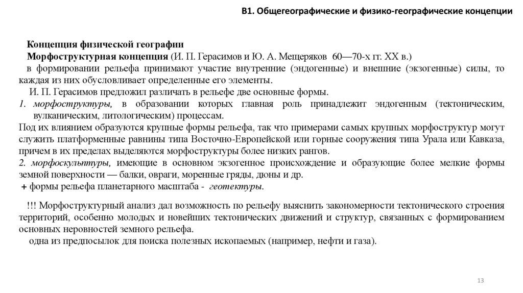 В1. Общегеографические и физико-географические концепцииФизико-географические концепции — морфоструктурная