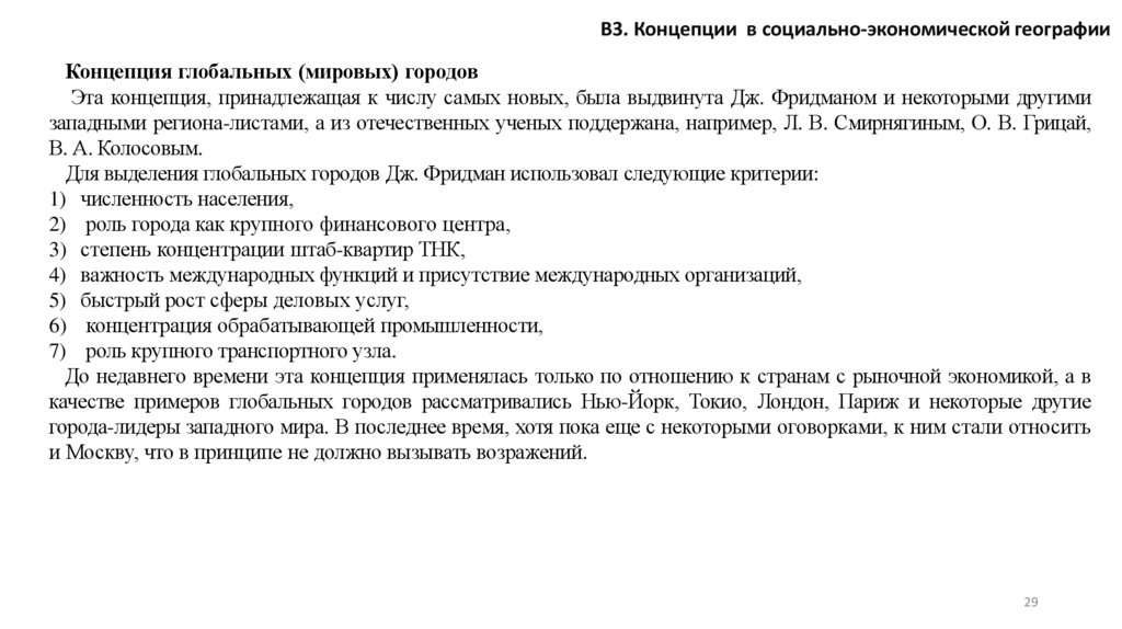 В3. Концепции в социально-экономической географии30