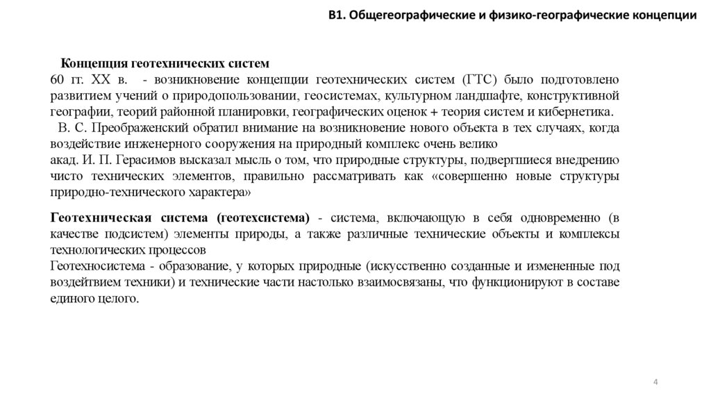 В1. Общегеографические и физико-географические концепцииКонцепция геотехнических систем