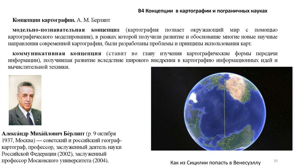 В4 Концепции в картографии и пограничных наукахКонцепции картографии. А. М. Берлянт