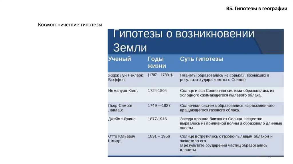 В5. Гипотезы в географииКосмогонические гипотезы